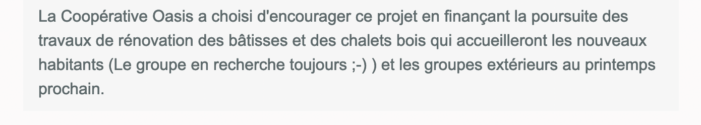 Fin novembre, Sophie de l’Oasis de Poul’Art a initié un weekend de rencontre inter-Oasis : deux jours consacrés à comprendre ce qui fait la santé relationnelle d’un écovillage, et à jeter les bases d’un réseau inter-oasis de médiateurs et médiatrices.